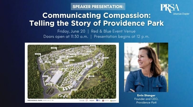 “Communicating Compassion: Telling the Story of Providence Park," led by Errin Stanger, founder and CEO of Providence Park, a master-planned community in Pulaski County that will provide affordable, permanent housing and a supportive community for residents coming out of chronic homelessness. Telling the story of how Providence Park came to life, Errin will share the communication and community relations strategies used to engage stakeholders and earn trust from surrounding neighbors.
